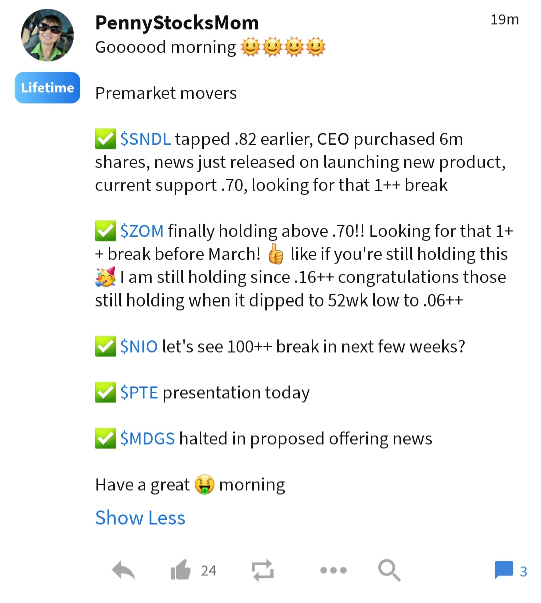 The latest messages and market ideas from pennystocksmom (@pennystocksmom) on stocktwits.
